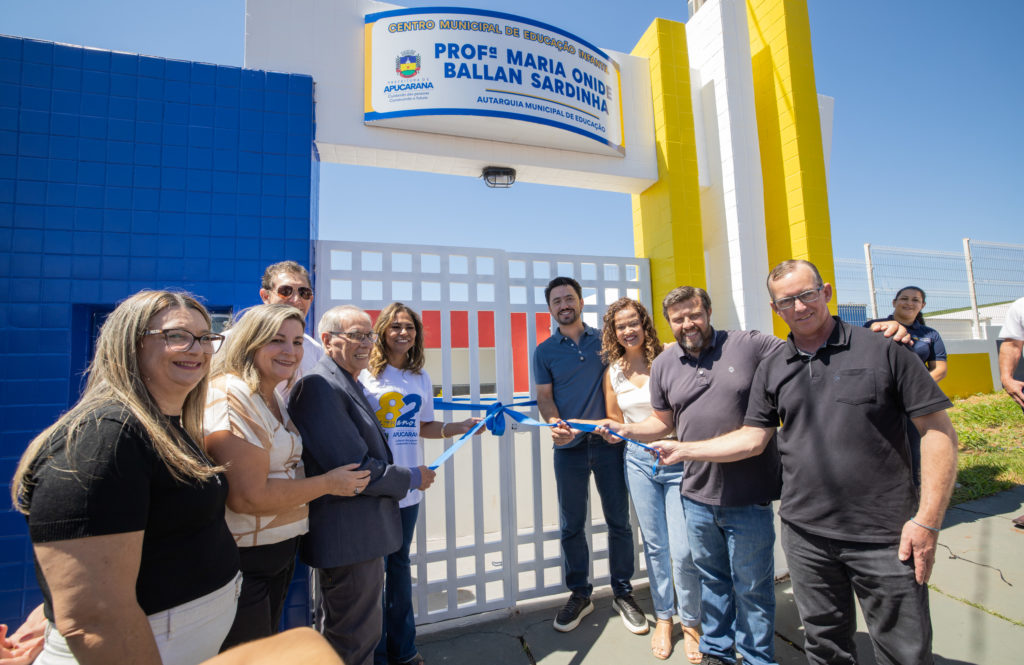 A Prefeitura de Apucarana inaugurou nesta semana o CMEI Professora Maria Onide Ballan Sardinha, novo Centro Municipal de Educação Infantil que passa a integrar a rede pública com foco na ampliação de vagas e no fortalecimento do atendimento à primeira infância.